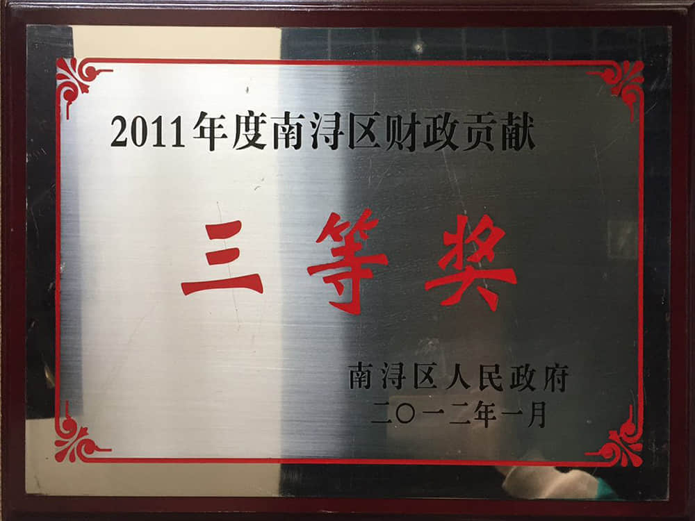 • 2011年南潯區財政貢獻獎三等獎