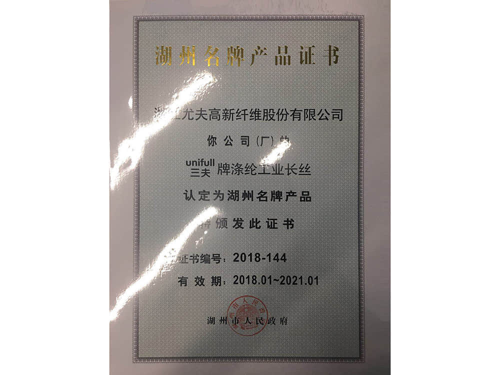 • 湖州名牌產品證書2018