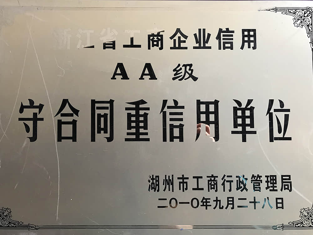 • 2010浙江省工商企業信用AA級守合同重信用單位